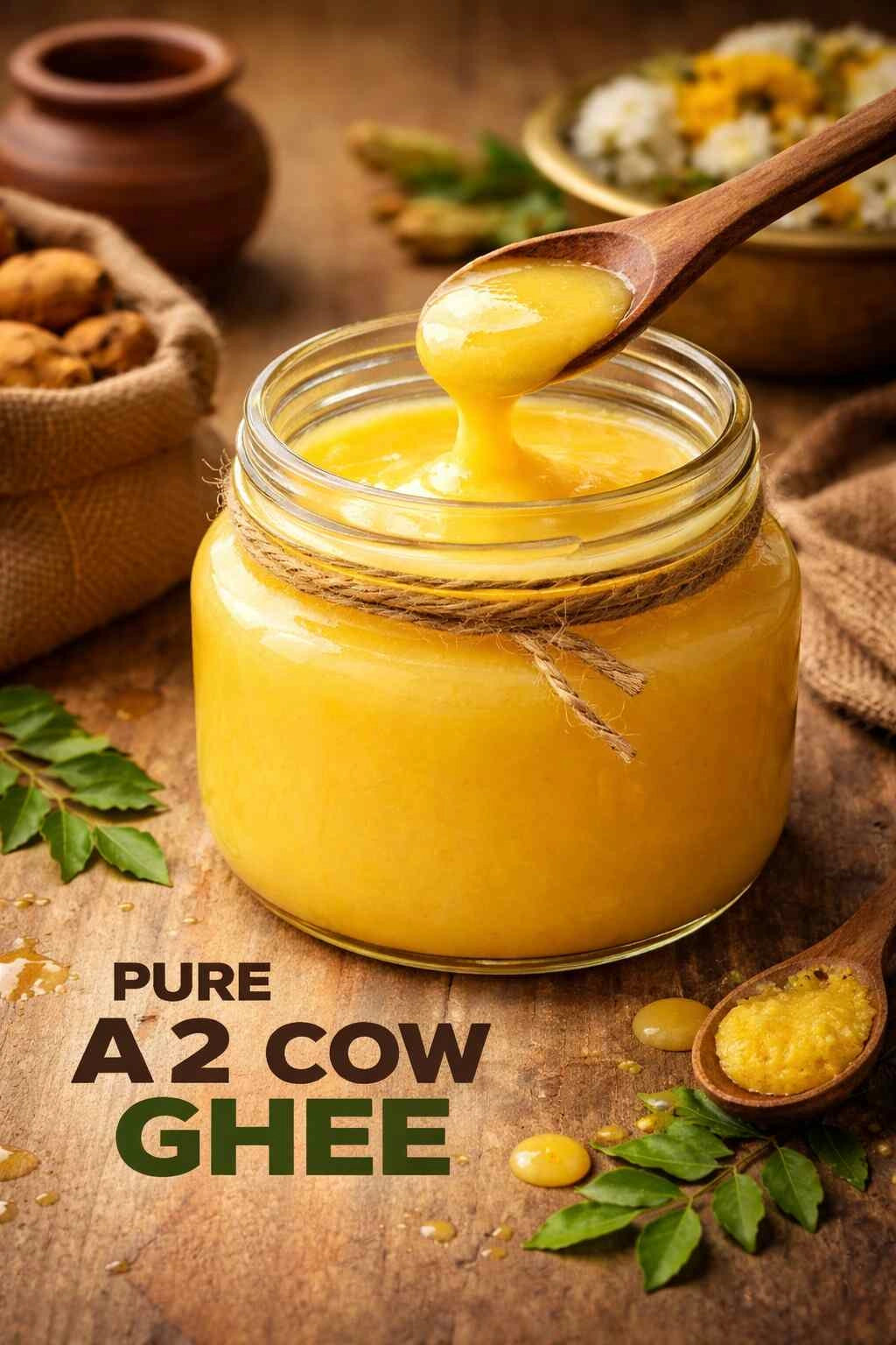 [IMAGE: A2 bilona ghee in clay pot with wooden spoon, natural lighting]A2 bilona ghee is a premium form of desi cow ghee made using traditional methods from the milk of indigenous Indian cow breeds. Unlike mass-produced ghee, it follows an ancient Ayurvedic process that preserves nutrients, flavor, and healing properties.